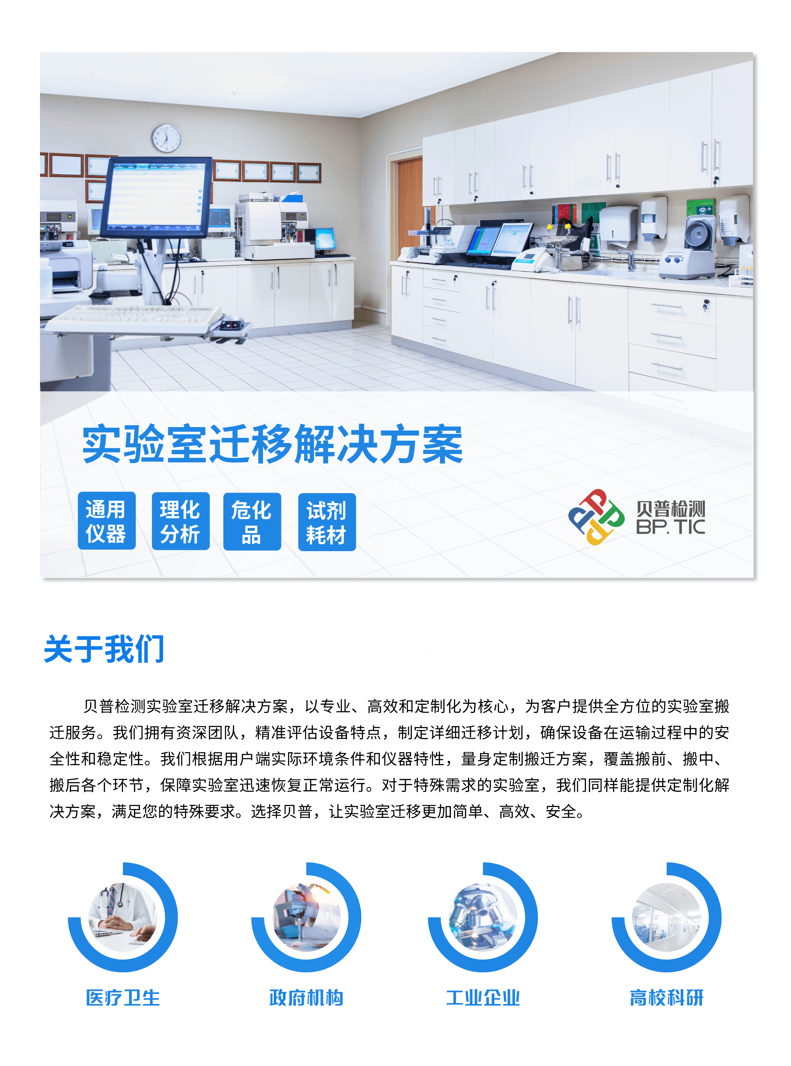 贝普检测实验室迁移解决方案,以专业、高效和定制化为核心,为客户提供全方位的实验室搬迁服务。我们拥有资深团队,精准评估设备特点,制定详细迁移计划,确保设备在运输过程中的安全性和稳定性。我们根据用户端实际环境条件和仪器特性,量身定制搬迁方案,覆盖搬前、搬中、搬后各个环节,保障实验室迅速恢复正常运行。对于特殊需求的实验室,我们同样能提供定制化解决方案,满足您的特殊要求。选择贝普,让实验室迁移更加简单、高效、安全。